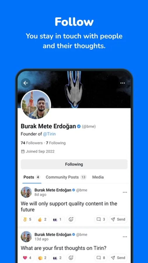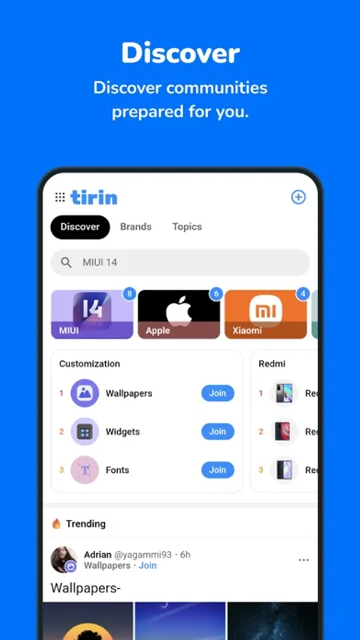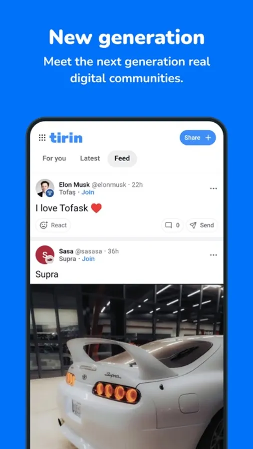 Interested in the latest fashion? Cars? Or TV serial stories or cute animal videos? Tirin has an unprecedented community for you. Join discussions, find like-minded people, and start exploring.