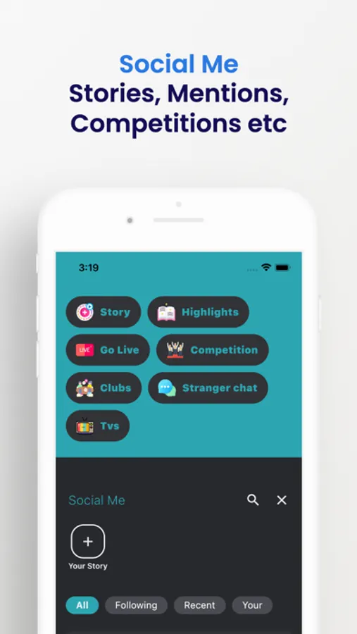 Social Me is a complete solution for social media lovers with timelines, chat, Stories, Mentions, Competitions, Stranger Talk, Go Live, Create, Watch, Entertain and even make money!