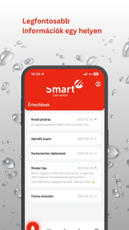 Mindig láthatod a rendelkezésedre álló kreditet. Fontos információkat kaphatsz értesítések formájában, megtekintheted autómosó helyszíneinket, követheted az éppen aktuális akcióinkat és kedvezményeket zsebelhetsz be. Feltöltéseidet és kupon jóváírásaidat könnyedén áttekintheted és gyorsan kapcsolatba léphetsz velünk számos platformon, köztük telefonon is!