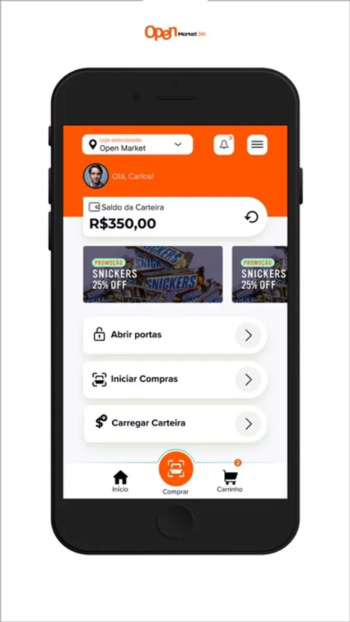 Com o aplicativo Open Market vai ser muito mais fácil fazer compras. Com ele você irá ter acesso às nossas lojas simplesmente scaneando o QR code na porta de entrada através do seu celular. Para comprar, basta apontar a câmera do seu celular para o código de barras do produto desejado, confirmar o seu carrinho virtual e fazer o pagamento pelo próprio aplicativo. Seu tempo é precioso para nós.