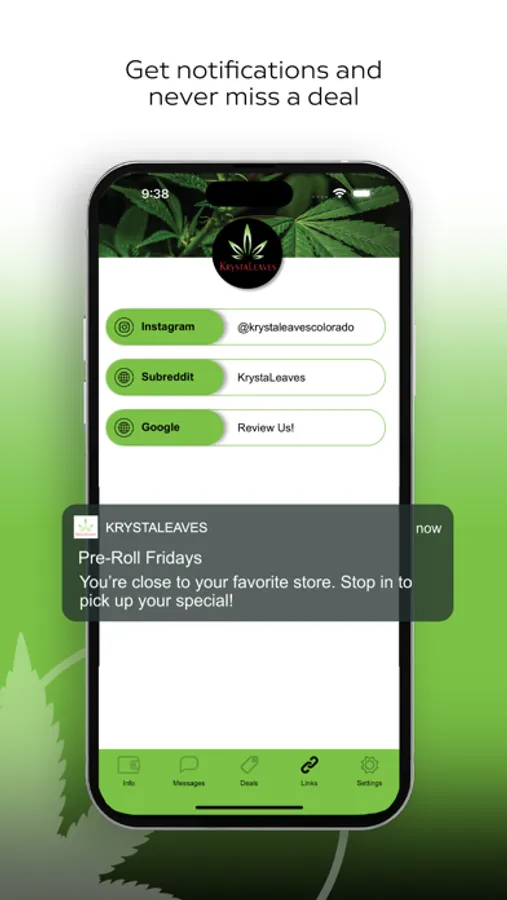 Get more of your favorite dispensary with the official KrystaLeaves app! Get exclusive offers, deal alerts, browse our social media and much more! You will have access to our VIP messages with special deals right at your fingertips. Staying connected to your favorite dispensary has never been easier.
