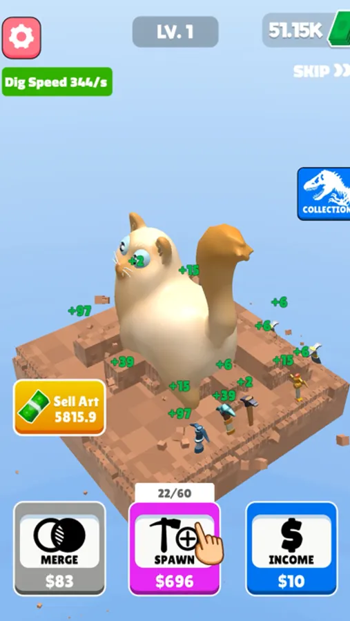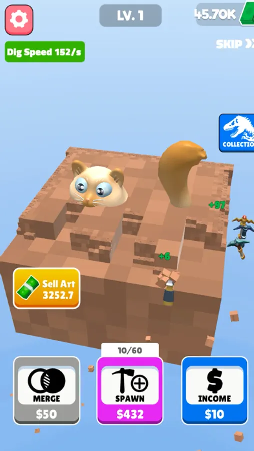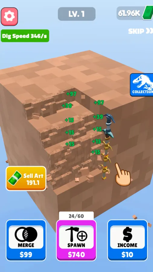 find hidden treasures by digging. Combine your pickaxes and create the strongest, fastest pickaxe. Sell the treasure you find or add it to your collection