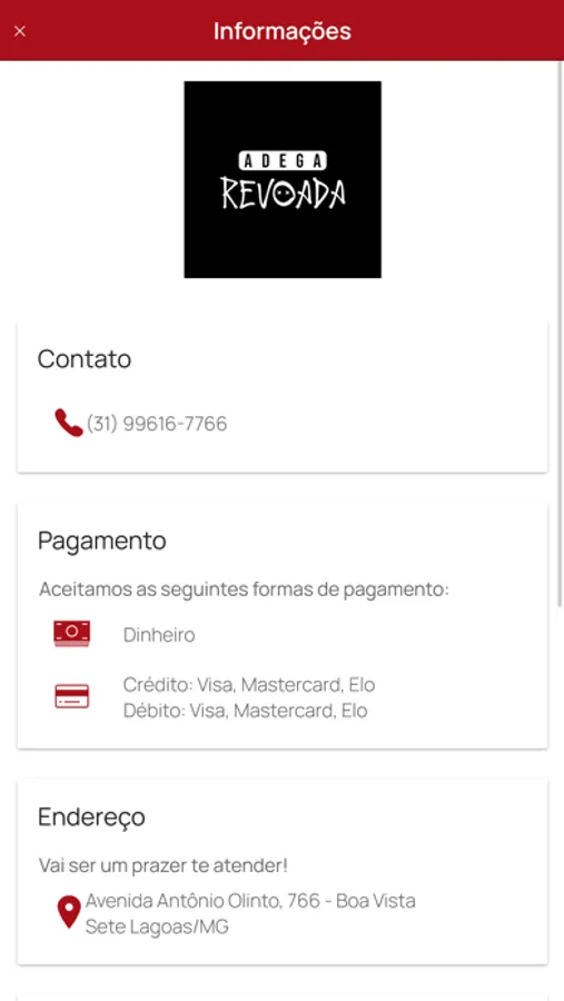 Aplicativo Adega Revoada - Sete Lagoas / UF