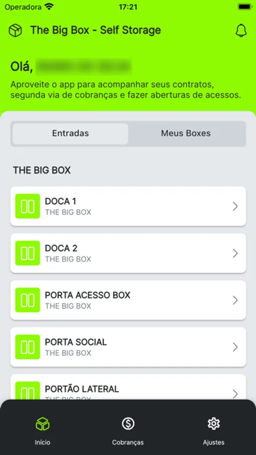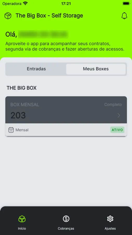 Através do app da The Big Box você cliente pode gerenciar seus contratos, visualizar suas cobranças e até mesmo abrir portas e portões do Self Storage.