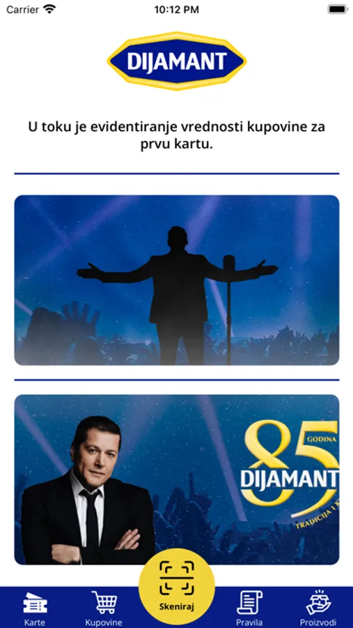 Preuzmite aplikaciju „Dijamant85“ i postanite deo Dijamant programa lojalnosti! Kupovina Dijamant proizvoda vodi vas na koncert.