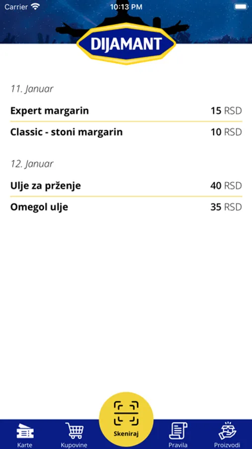 Skenirajte svoj fiskalni račun iz bilo koje prodavnice, kako bi se zabeležila vrednost vaše kupovine Dijamant proizvoda.