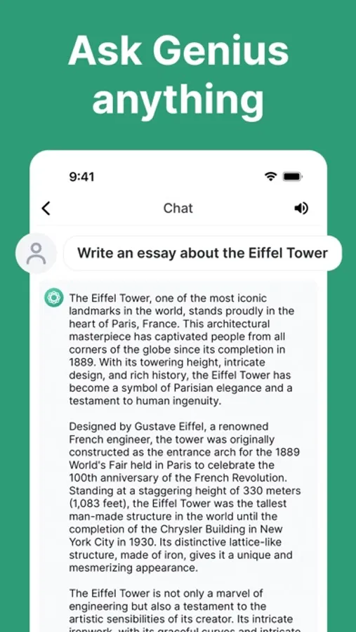 With its advanced AI capabilities, Genius can understand and respond to a wide range of topics, from politics to personal anecdotes. Genius can also help you research complex topics, write essays, create code, conjure up new recipes and more. Using ChatGPT, Genius can understand and write like a person.