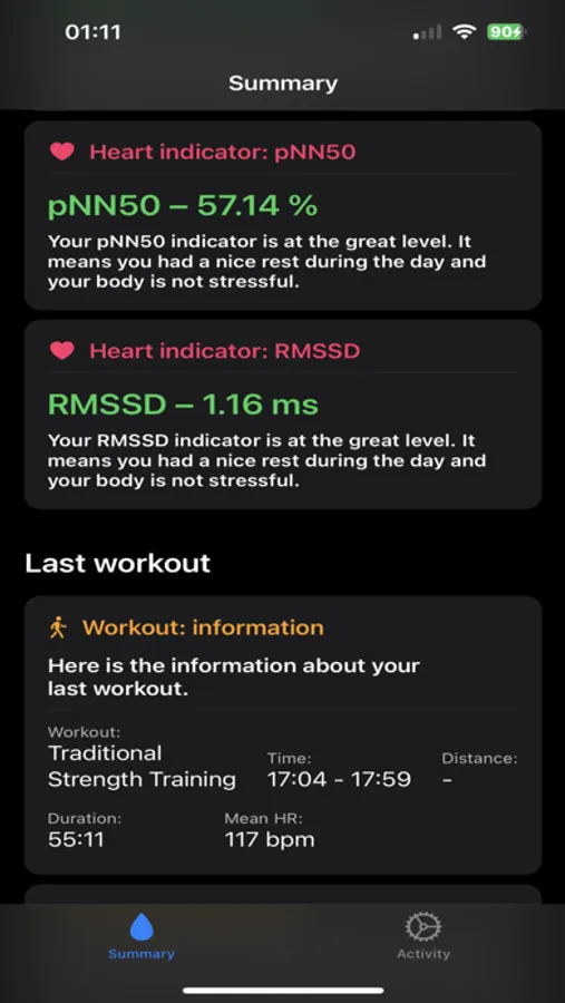 Heartia is a heart tracker that tracks your heart with Apple Watch*. You don't have to do anything - it happens automatically. Just be with the watch on and get a summary with basic heart, variability, SDNN, pNN50, RMSSD analysis and statistics