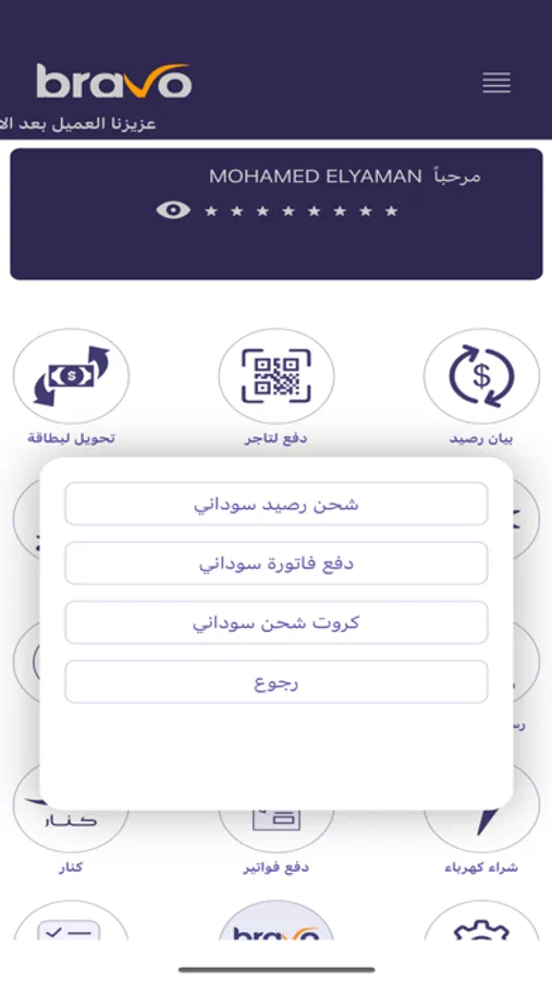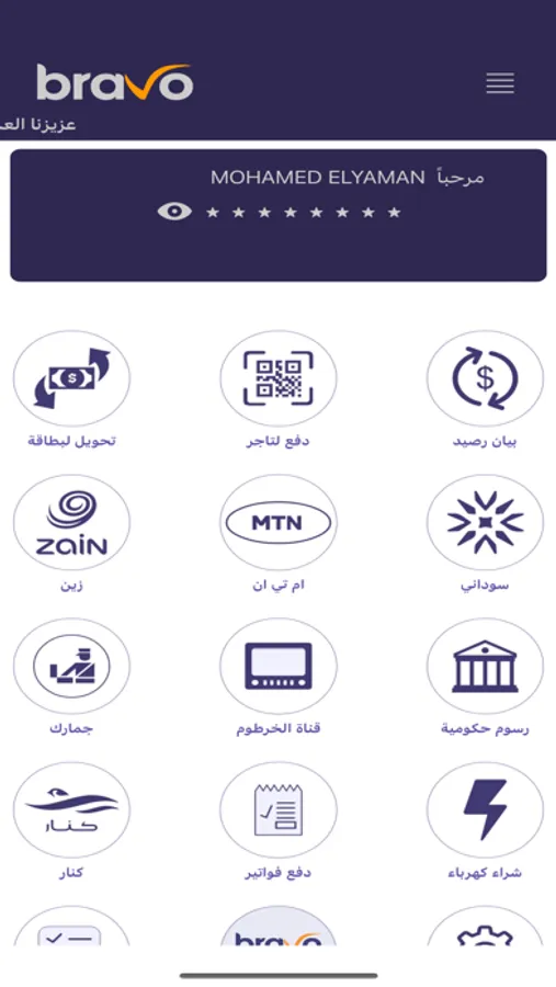 Bravo Pay+ allows users to purchase international phone credit from mobile network operators (Zain, MTN and Sudani), pay international electricity bills, taxes, school tuition and other utilities. The app also provides users with QR code payment methods purchasing items at international points of sale (POS). Bravo is a simple app and targets users who want a quick and easy way to manage utilities.