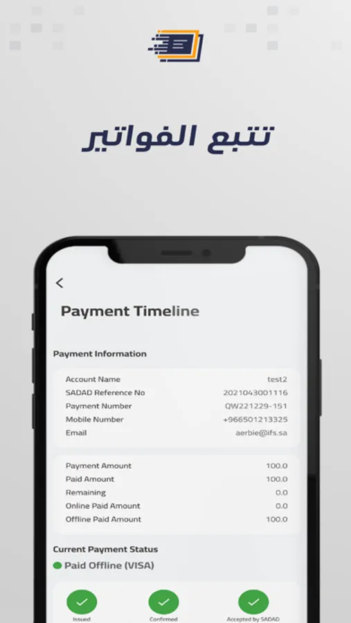 يتمكن المفوترمن الإطلاع على تقارير مفصلة عن المدفوعات المستلمة، وتتبع المطالبات المالية عن طريق "بوابة التاجر"، التي تقدمها شركة الحلول الشاملة المالية للمفوترين على الويب، والتي تمنح المفوترين العديد من المزايا والخدمات وأدوات التتبع والتقارير المفصلة عن جميع عمليات المطالبات المالية الخاصة بالمنشآة.