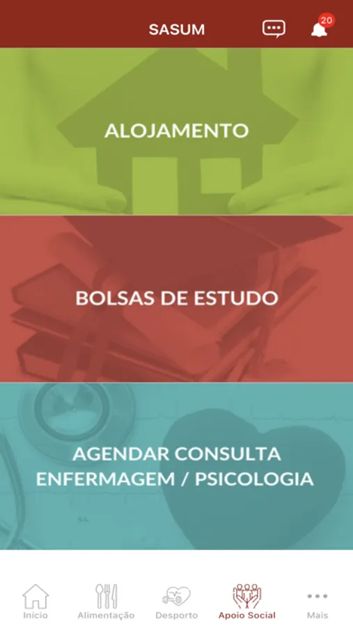 Compre refeições, aceda aos nossos serviços de alojamento e marque consultas, obtenha informações sobre bolsas e conheça e aceda a toda a oferta desportiva, entre outras funcionalidades.