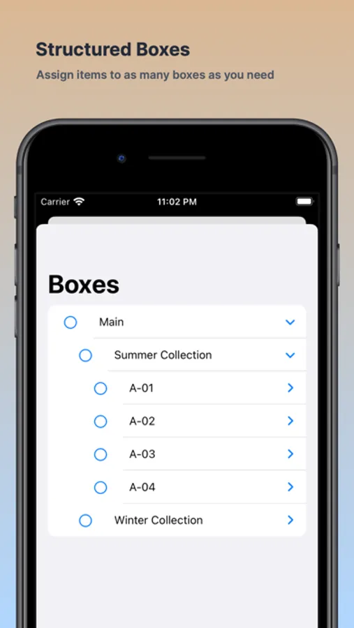 Say goodbye to cluttered and disorganized storage spaces with our new item organization feature. With our app, you can easily assign items to specific bin locations or boxes, keeping your inventory organized and easy to access. Whether you're managing a warehouse, a retail store, or just your personal possessions, our app makes it simple to keep track of where everything is. Search for items by location, or quickly see which items are running low in a specific bin or box. Try it now and take control of your organization.