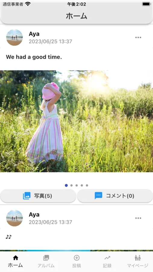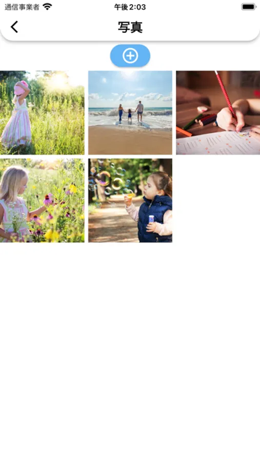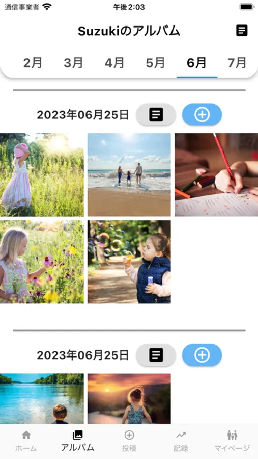 家族内で写真を共有、家族別で投稿を分ける機能、月別に見直せるアルバム機能、成長記録機能