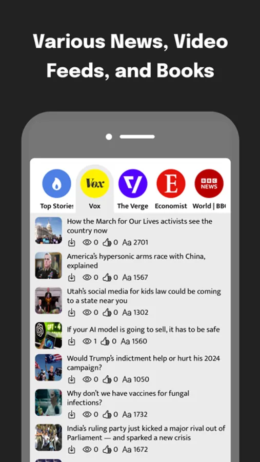 Consume English content (books, videos, songs, news) with translations in your native language