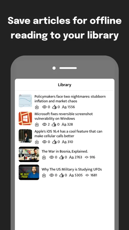 Save articles for offline reading (video and song playback is only supported when you are online, but transcripts for these are available when offline as well)