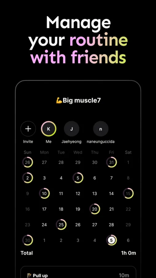 Team up with your friends to conquer routines together, monitor each other's progress in real-time, and keep each other engaged with constant interactions.