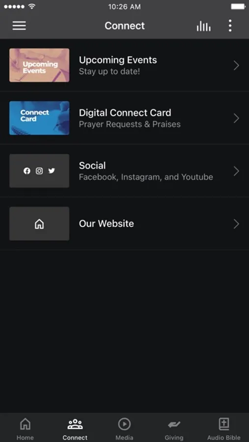 This app will help you stay connected with the day-to-day life of our church. With this app you can: watch or listen to past messages; stay up to date with push notifications; share your favorite messages via Twitter, Facebook, or email; and download messages for offline listening.