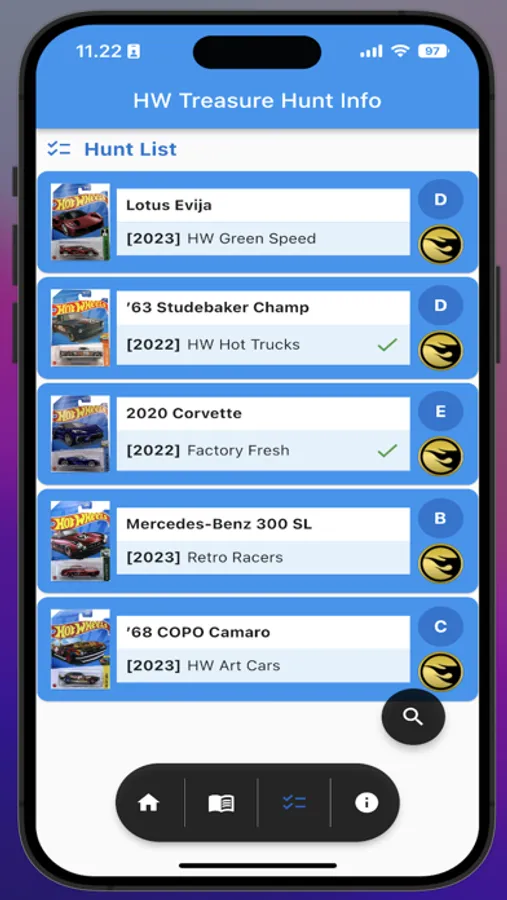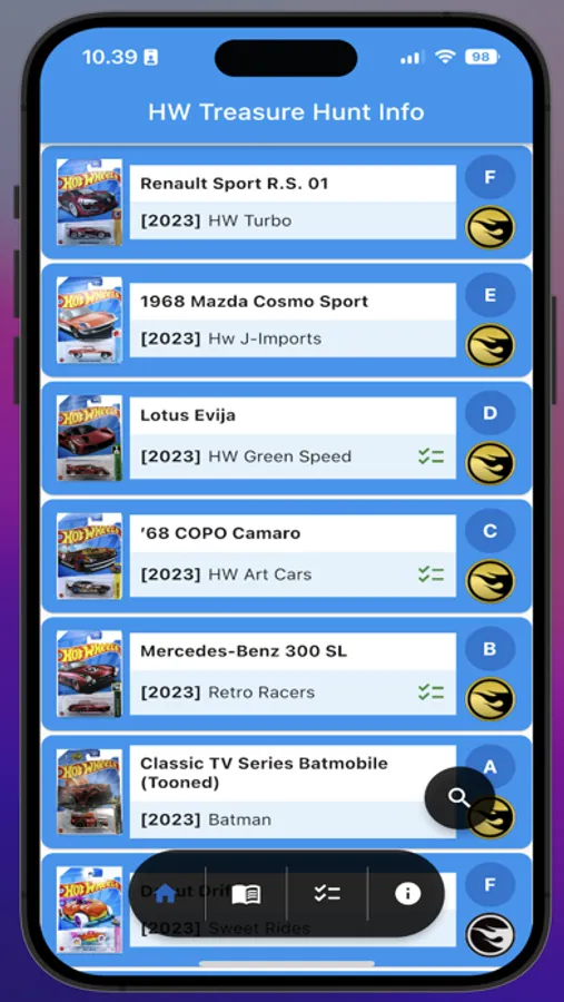This application is an offline application that contains information about Hot Wheels Super Treasure Hunt and Treasure Hunt, so you don't need the internet to use this application. The application is also equipped with several features such as data that has been sorted by year, lot and type of Treasure Hunt. Then there is a feature to create a wanted list with a search facility based on name, year, series and also the type of Treasure Hunt which will really help you when you are hunting for Super Treasure and Treasure Hunt.