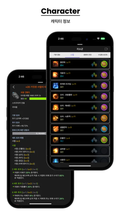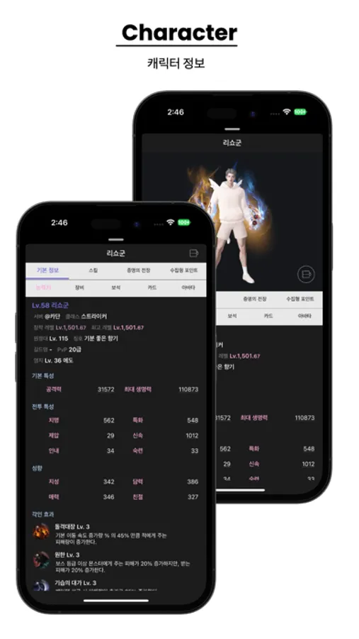 • 대표 캐릭터를 설정하고 빠르게 정보를 확인 할 수 있습니다.