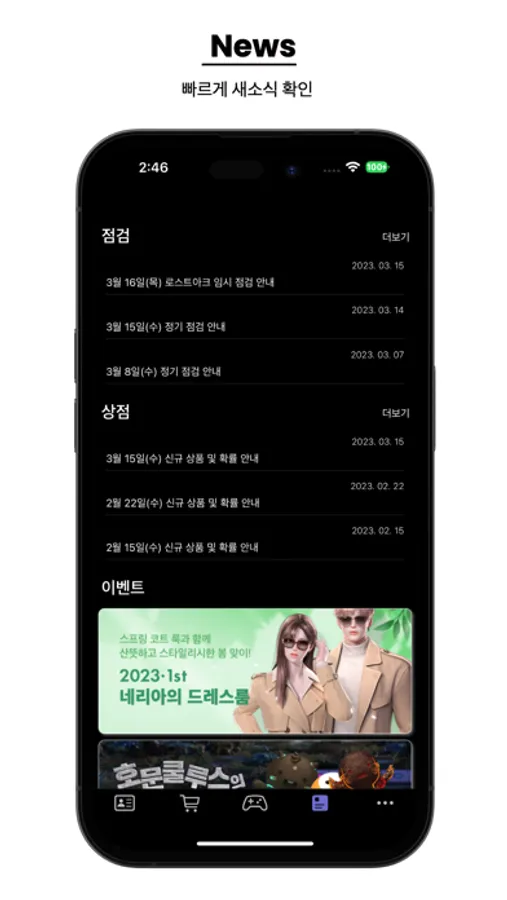 • 공지 및 이벤트 등 새소식을 확인 할 수 있습니다.