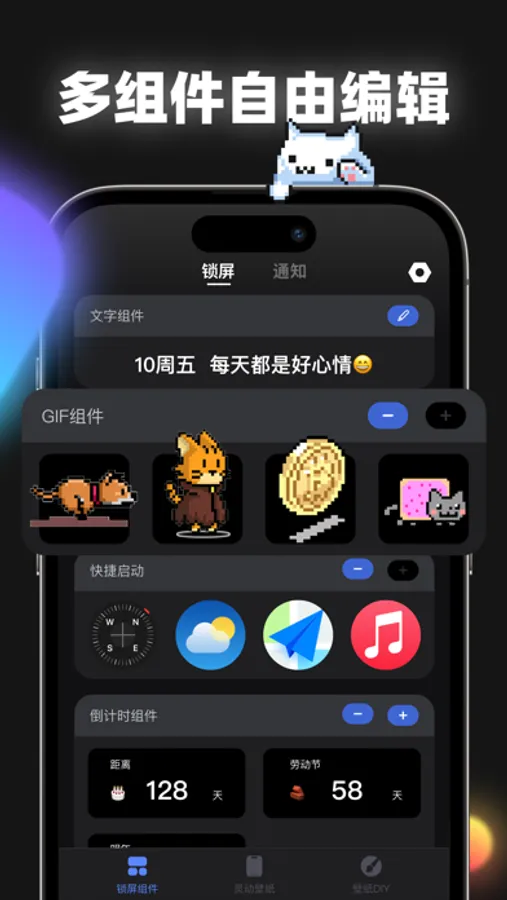 自定义心情、符号、表情,添加动态图片组件、实现个性化锁屏界面