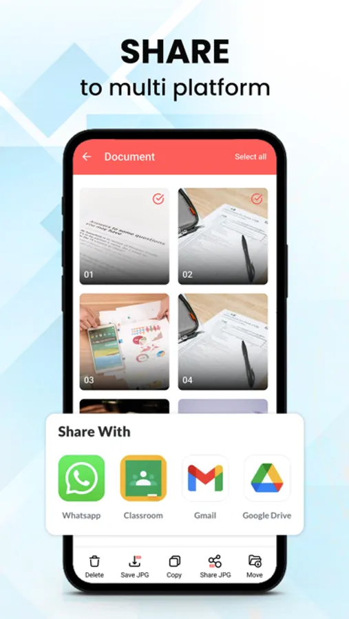 - After scanning, you can share files via Gmail, Dropbox, Evernote, Google Drive, OneDrive, Telegram,....with a few taps. With this secure pdf scanner app, all documents are stored locally on your phone, no one can access except the owner.