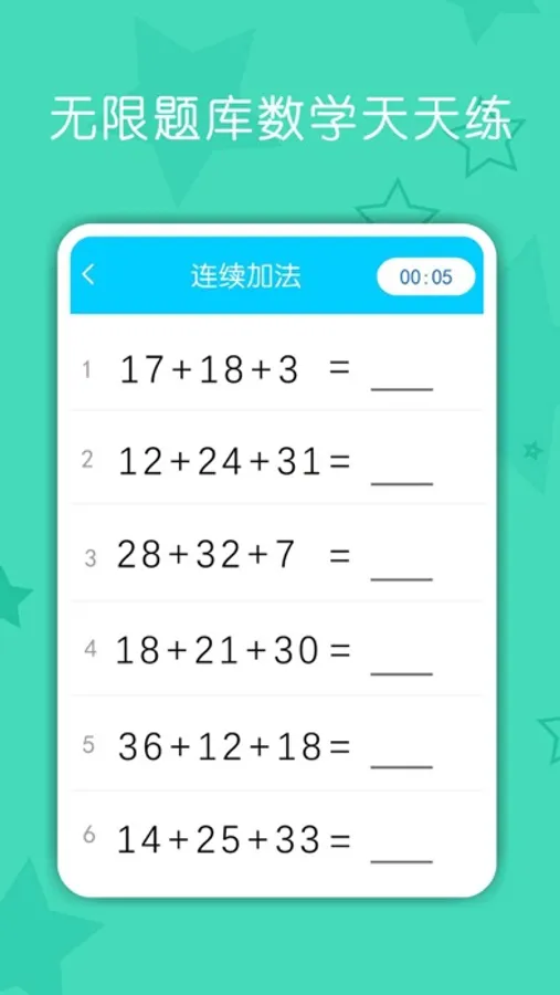这是一款适合小学生学习数学口算练习的App,赶快来练习吧!