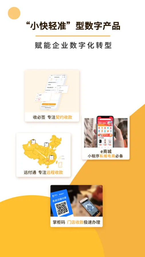 掌客多是一家专注企业数字化转型的工具型SaaS服务商,聚焦中小微企业特征及需求,持续推出数字化产品及解决方案,赋能其快速实现数字化转型,目前已上线产品有掌柜码、远付通、收必签、e商城、跨境收、e脸通、智慧店等。我们将聚焦中小微企业数字化转型的各类“数字鸿沟”,使其更普惠、更多惠及广大中小微企业。