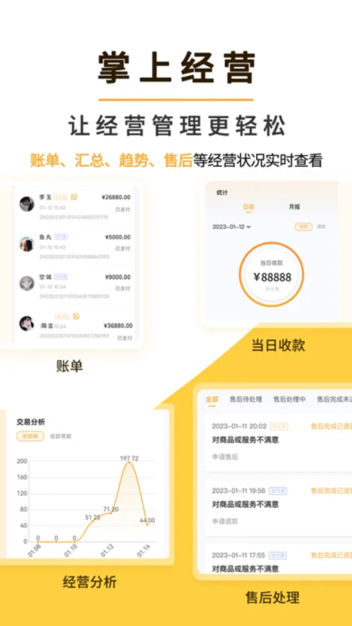 掌客多商服通是企业数字化经营产品及解决方案的工具箱,移动端随时随地可实现掌上数字经营,具体产品可按需订阅。