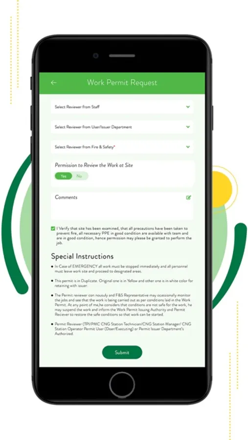 The app based Safety Work Permit is a dedicated real time monitoring system consists of two separate permits i.e., Hot Work Permit and Cold Work Permit. The purpose of app based Safety Work Permit System is: