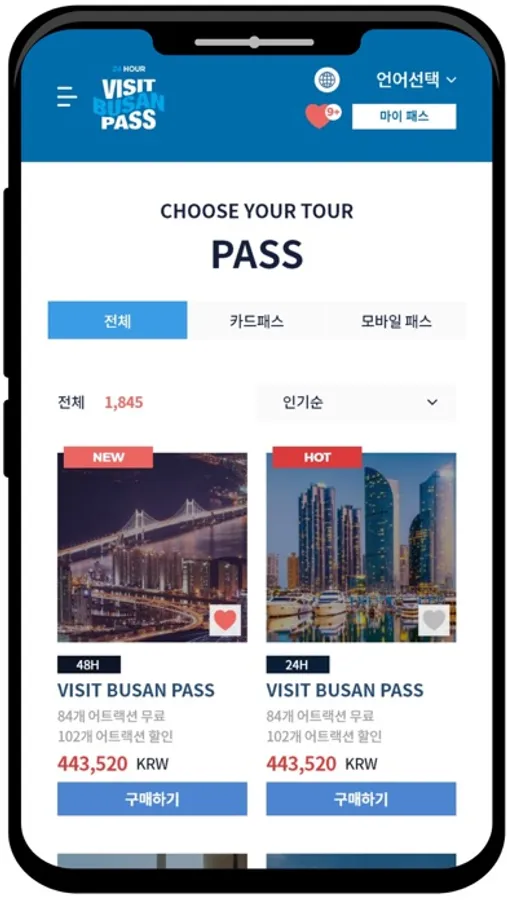 The Visit Busan Pass offers a physical card-type pass and a mobile pass at a reasonable price of KRW 49,000 for a 24-hour pass and KRW 69,000 for a 48-hour pass, providing the pleasure of sightseeing in Busan beyond the price paid.