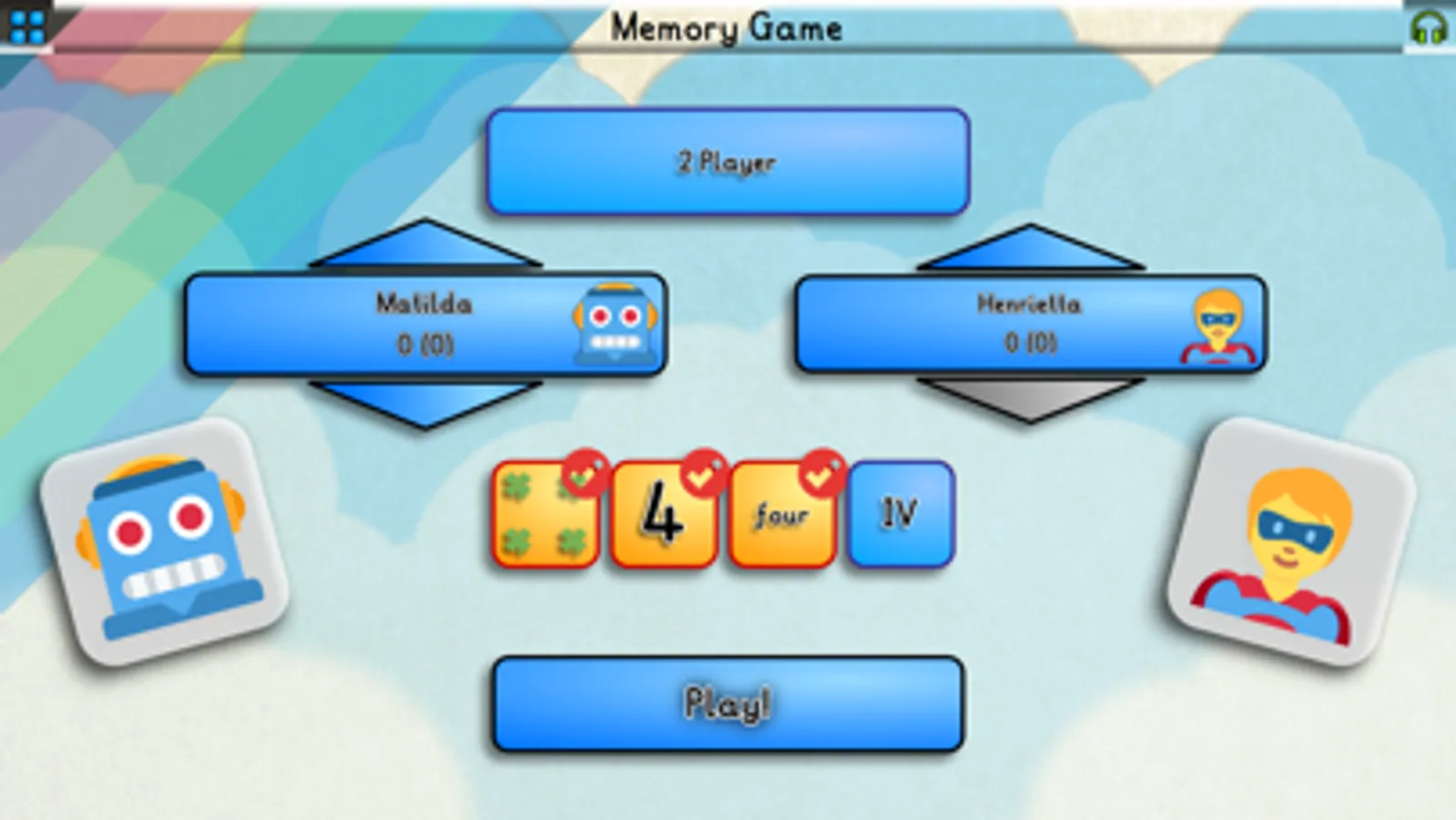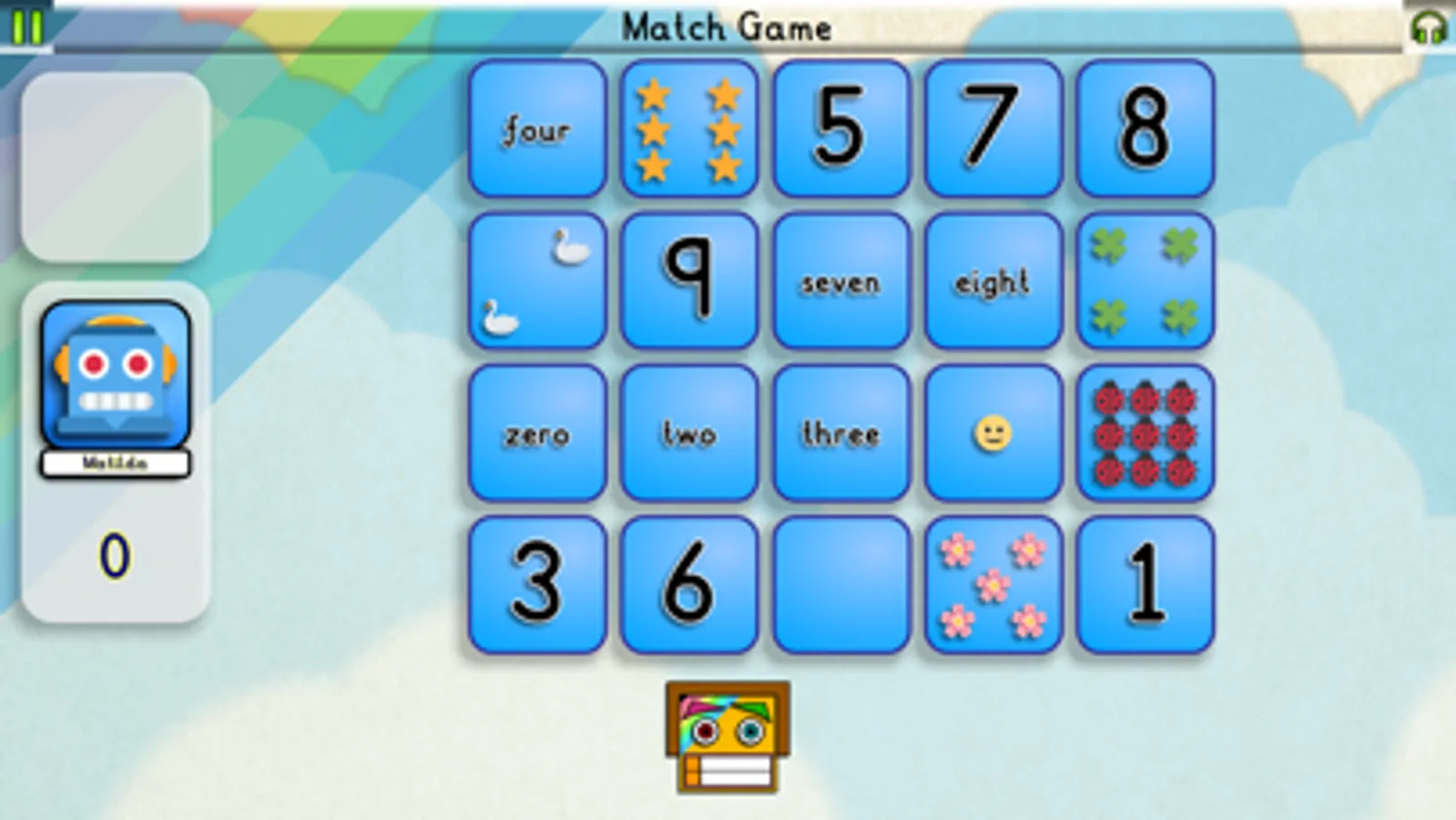 Learn digits, counts, words and Roman numerals. All or any combination can be selected for a game.