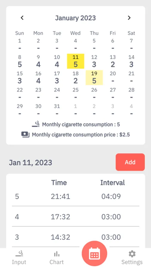 Even If you forget to keep a record of your smoking, you can add past records from the Calendar screen.