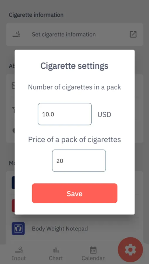 With this app, you can easily operate it and note down the number of times you smoke every day.