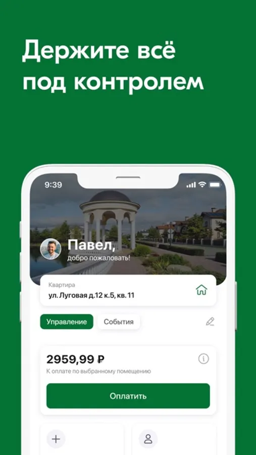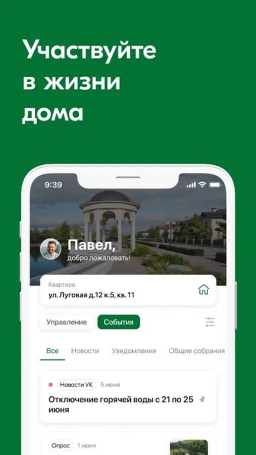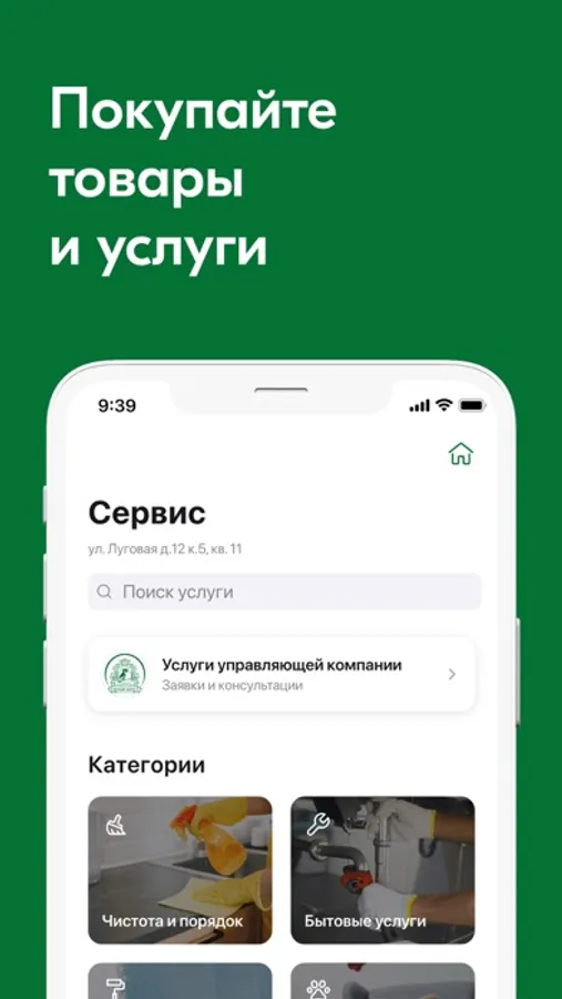 - Вызов мастера, отслеживание статуса заявки, чат с УК, оценка качества работы;