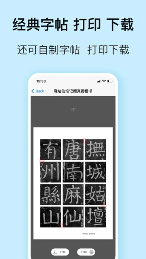 + 打印、下载经典字帖或自制字帖;