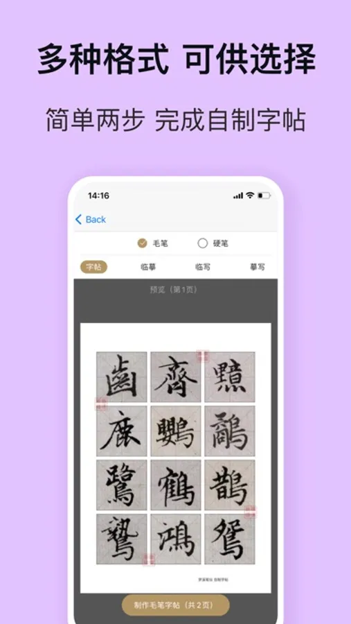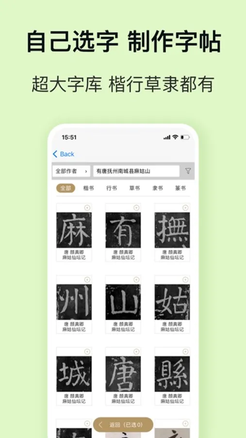 + 从书法字典选字自己制作字帖;
