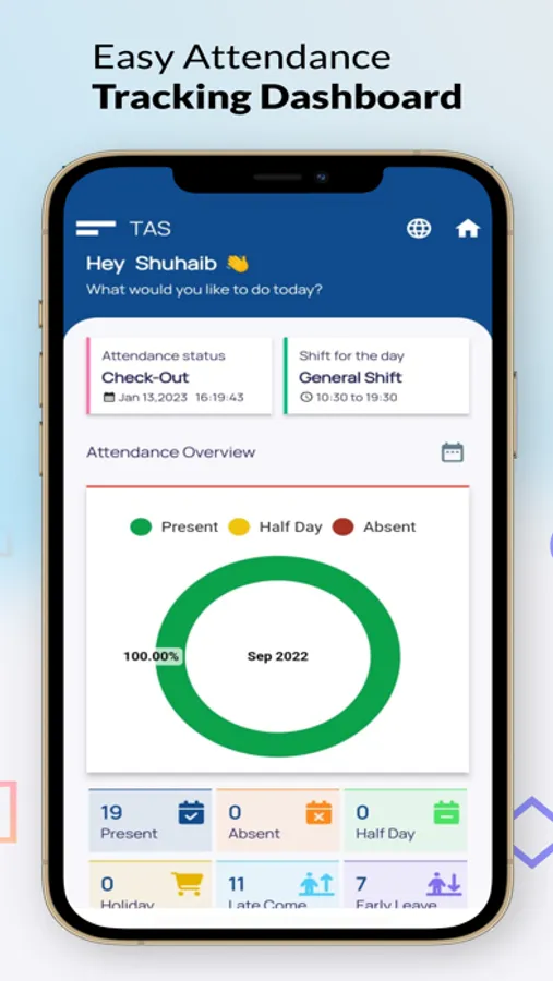 - Dashboards for attendance overview and leave overview with balance leave, utilised leave etc