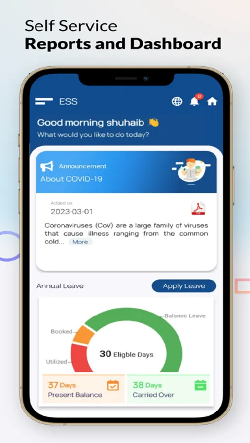 - Dashboard with notification, leave balance, request from team members