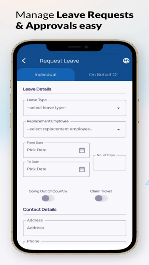 - Place annual leave request, sick leave or any other requests