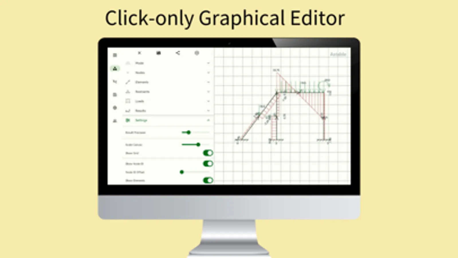 Astable Grand is a beautiful and powerful structural mechanics solver with graphic editor, code editor, workspace, mechanics parameter settings, rich theme color scheme, etc. It is suitable for large screen devices such as tablet and PC.