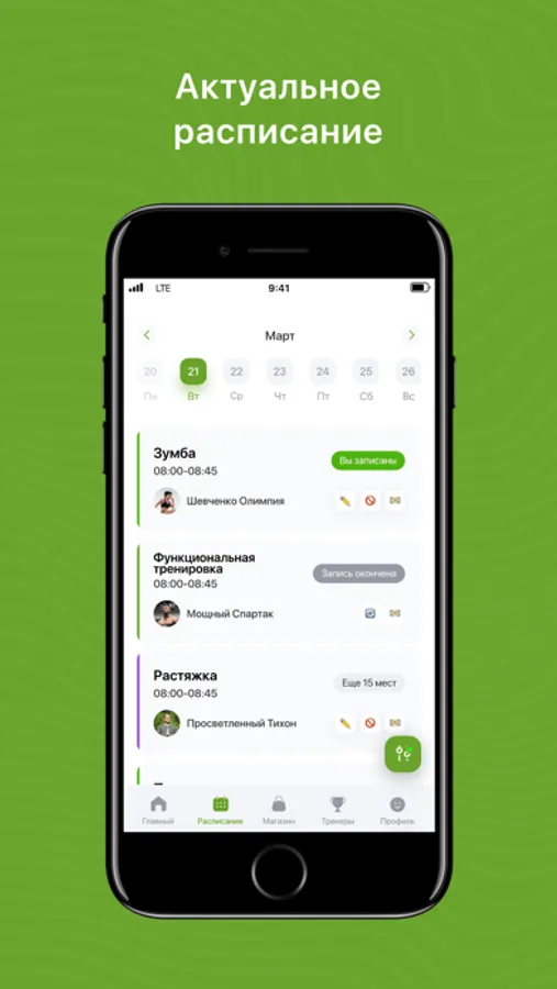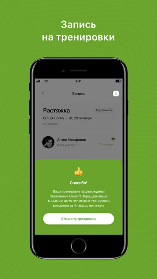 Записаться на групповые тренировки и отменить запись на тренировку;
