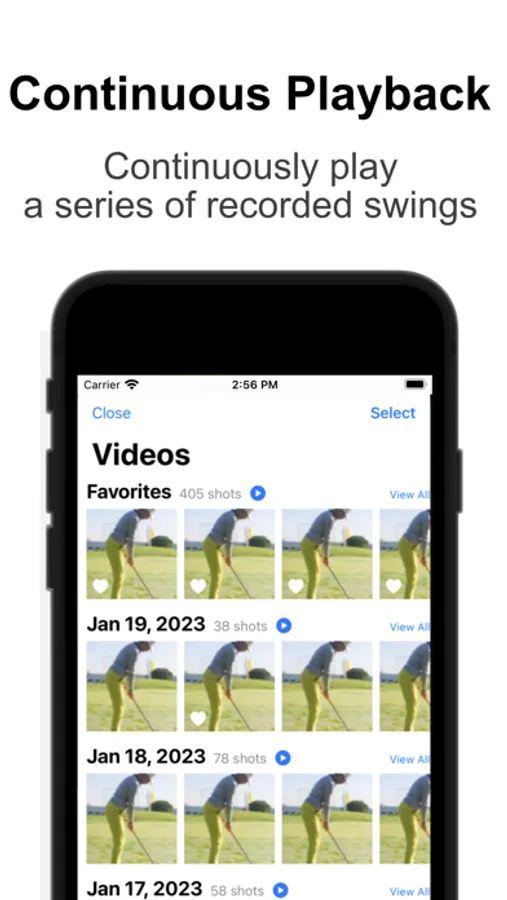 In addition, recorded swing videos can be played back continuously and compared.