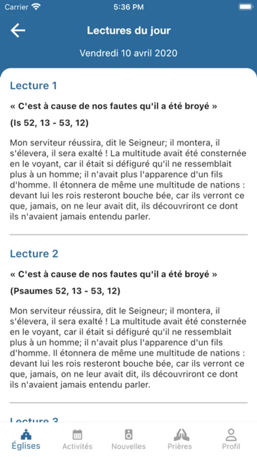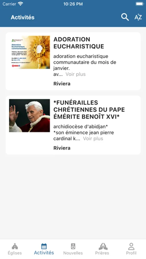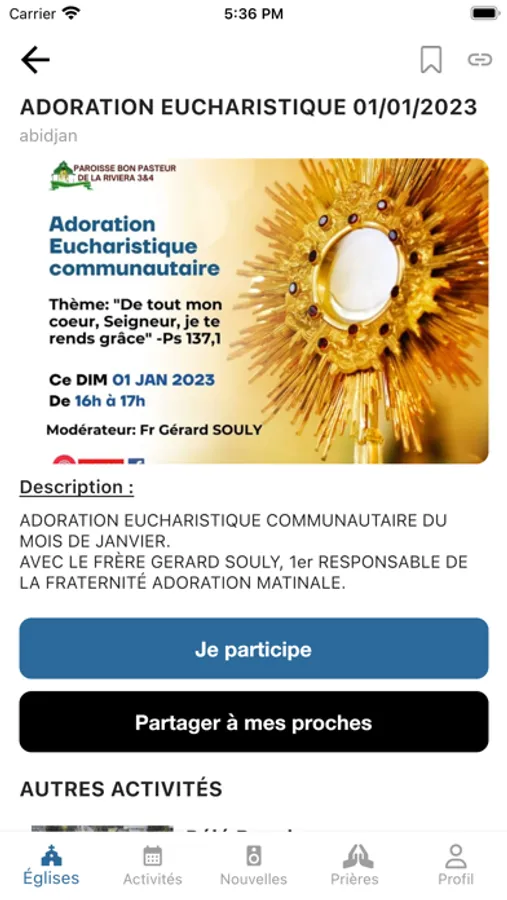 - Suivre les activités des paroisses de votre ville