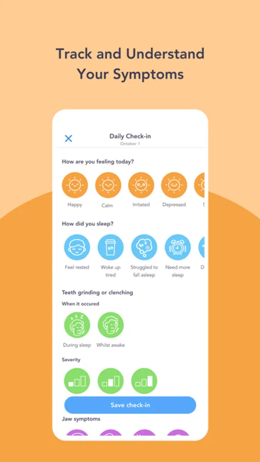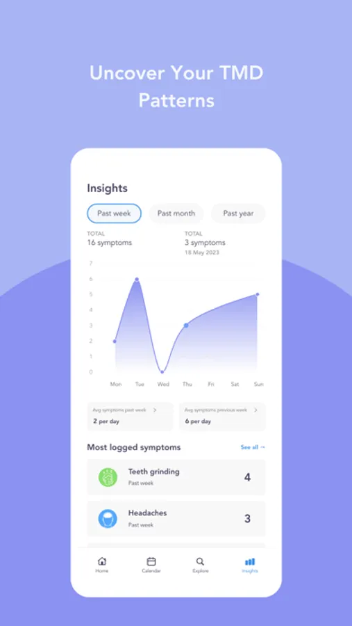 1. Symptom Tracker: Build a comprehensive profile of your TMD experience with our easy-to-use symptom tracker. Visualize your journey, recognize patterns, and discover what strategies work best for you.