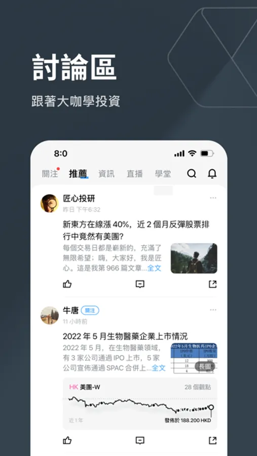 1. 支持多種金融服務產品——港股、美股、A股、深港通、滬港通等多市場行情