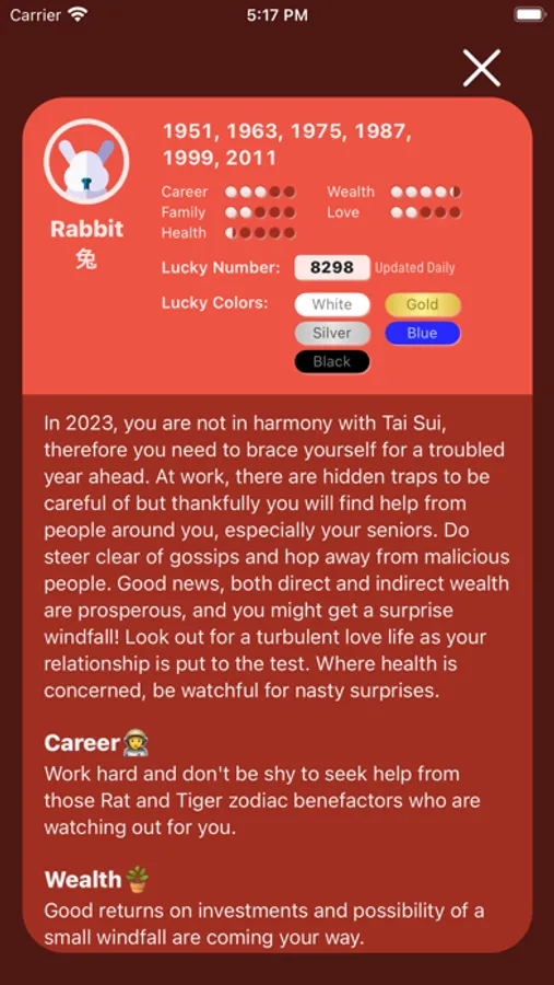 - 2023 Zodiac reading covering career, wealth, relationships and health