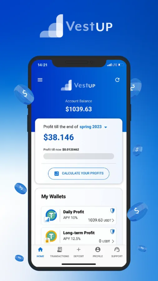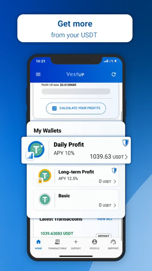 Hold your USDT in your VestUp wallet, and get daily USDT interest.