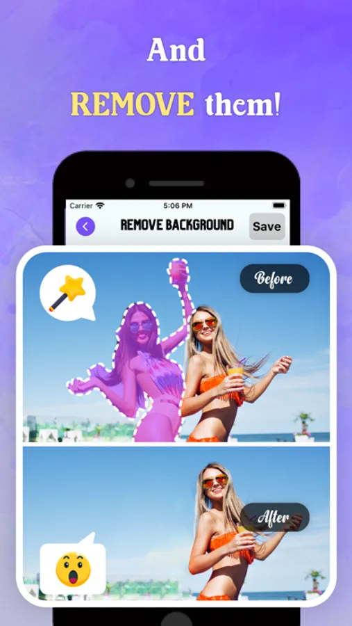 - Instantly remove the background from any photo in your camera roll. Erase the background with a perfect cutout.