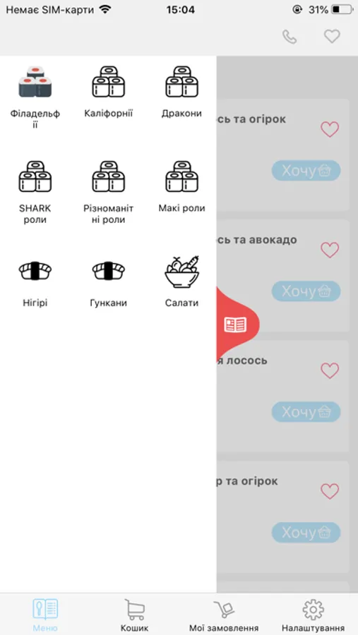 З додатком Shark Sushi замовляти суші, сети, роли легко, оскільки в додатку доступні детальні описи і фотографії страв
